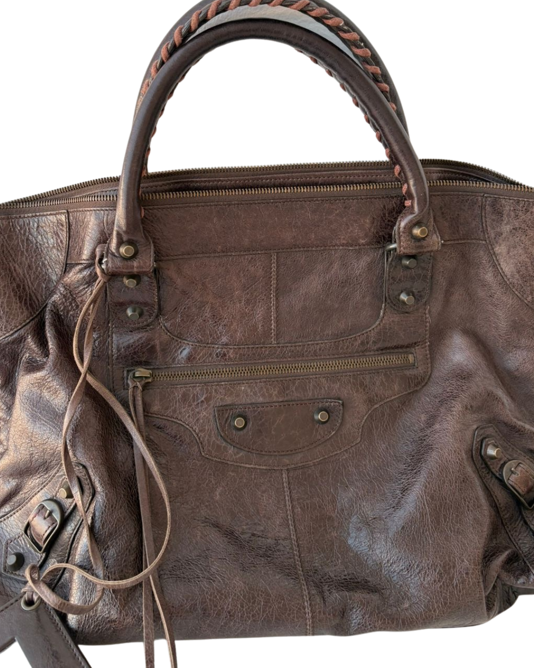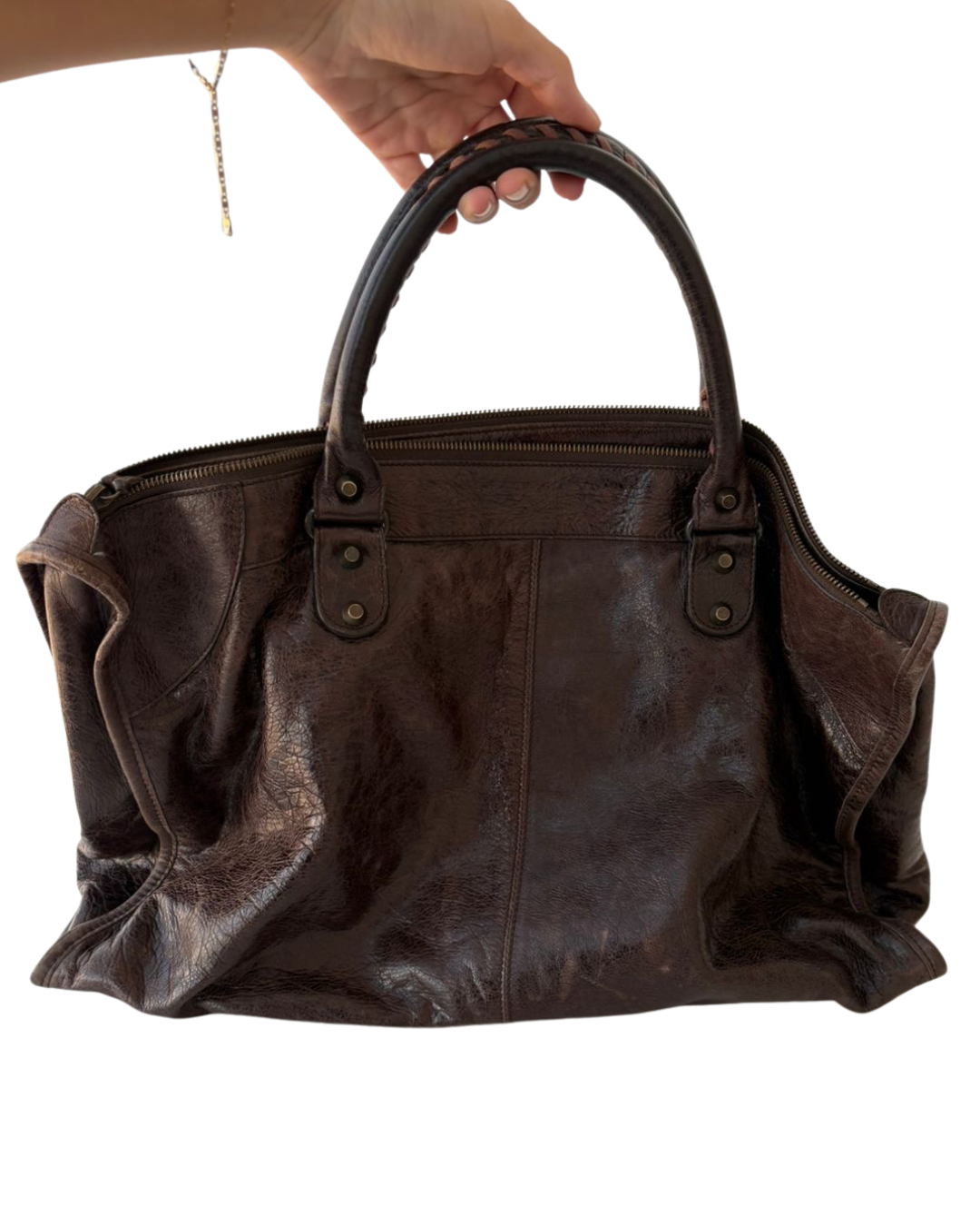 Em bom estado de conservação, com sinais de uso visíveis nas extremidades, como leve desgaste nas alças e couro amaciado, típico do modelo. O couro tem uma pátina envelhecida, que adiciona um charme vintage à peça.