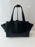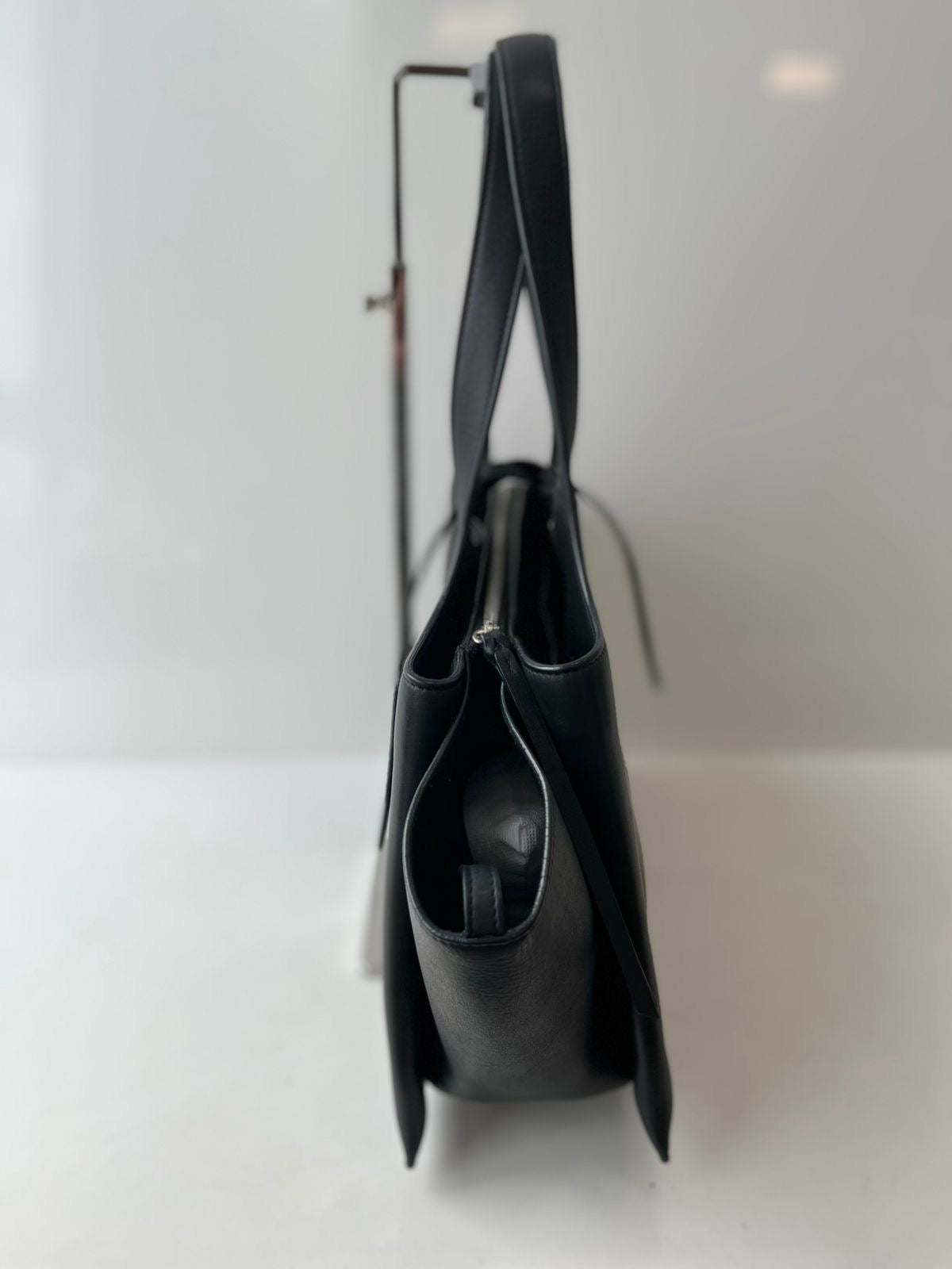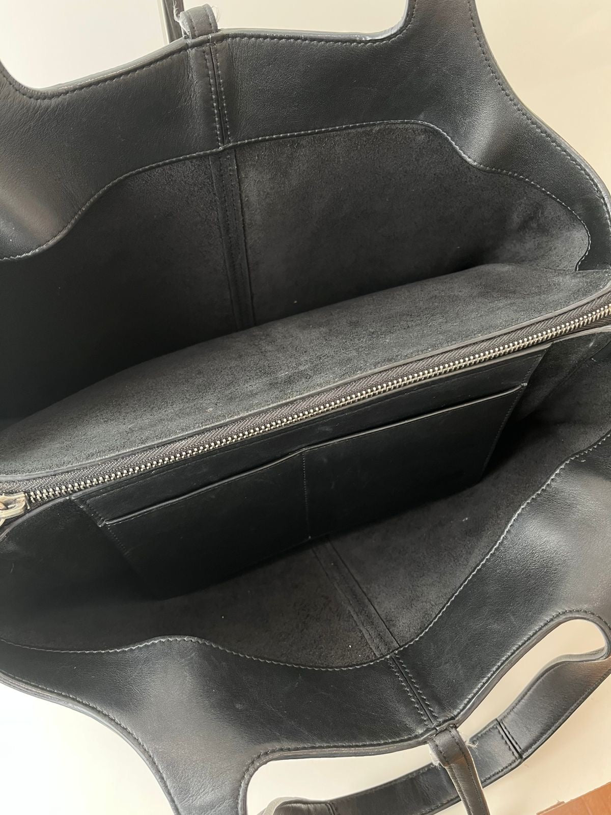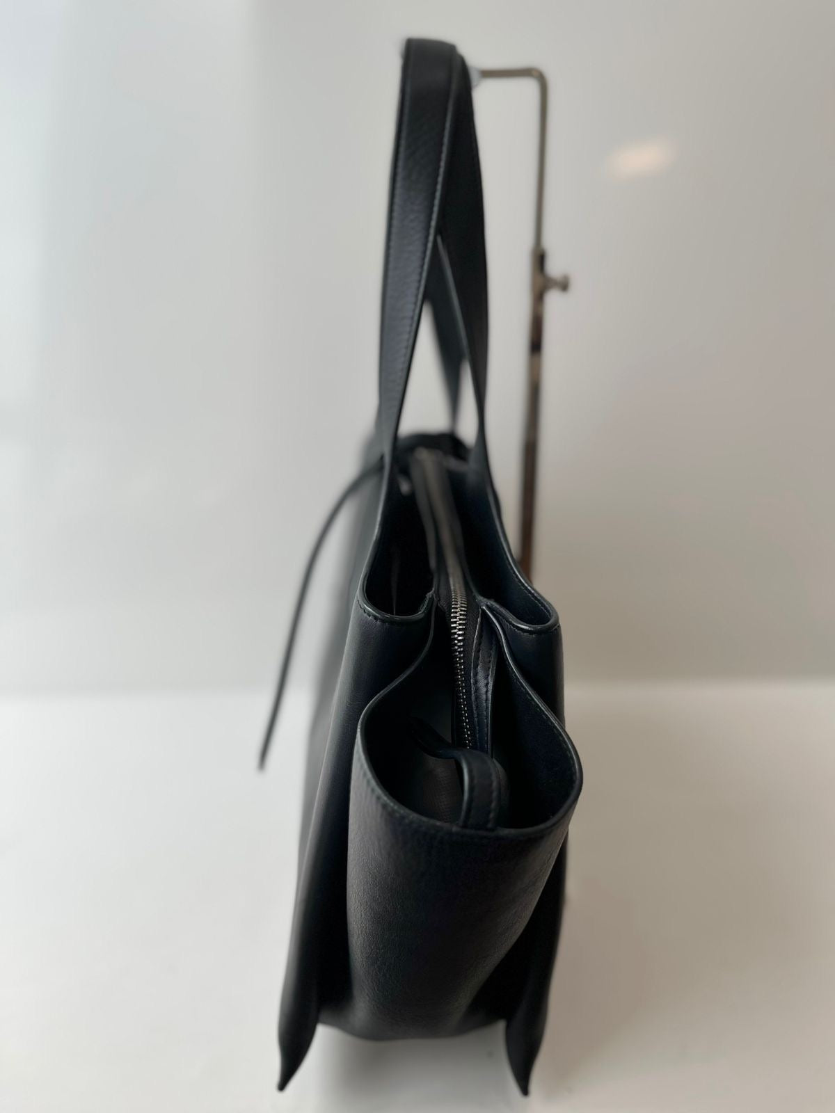 Couro liso de alta qualidade, com acabamento sofisticado e estrutura firme, característico da Celine