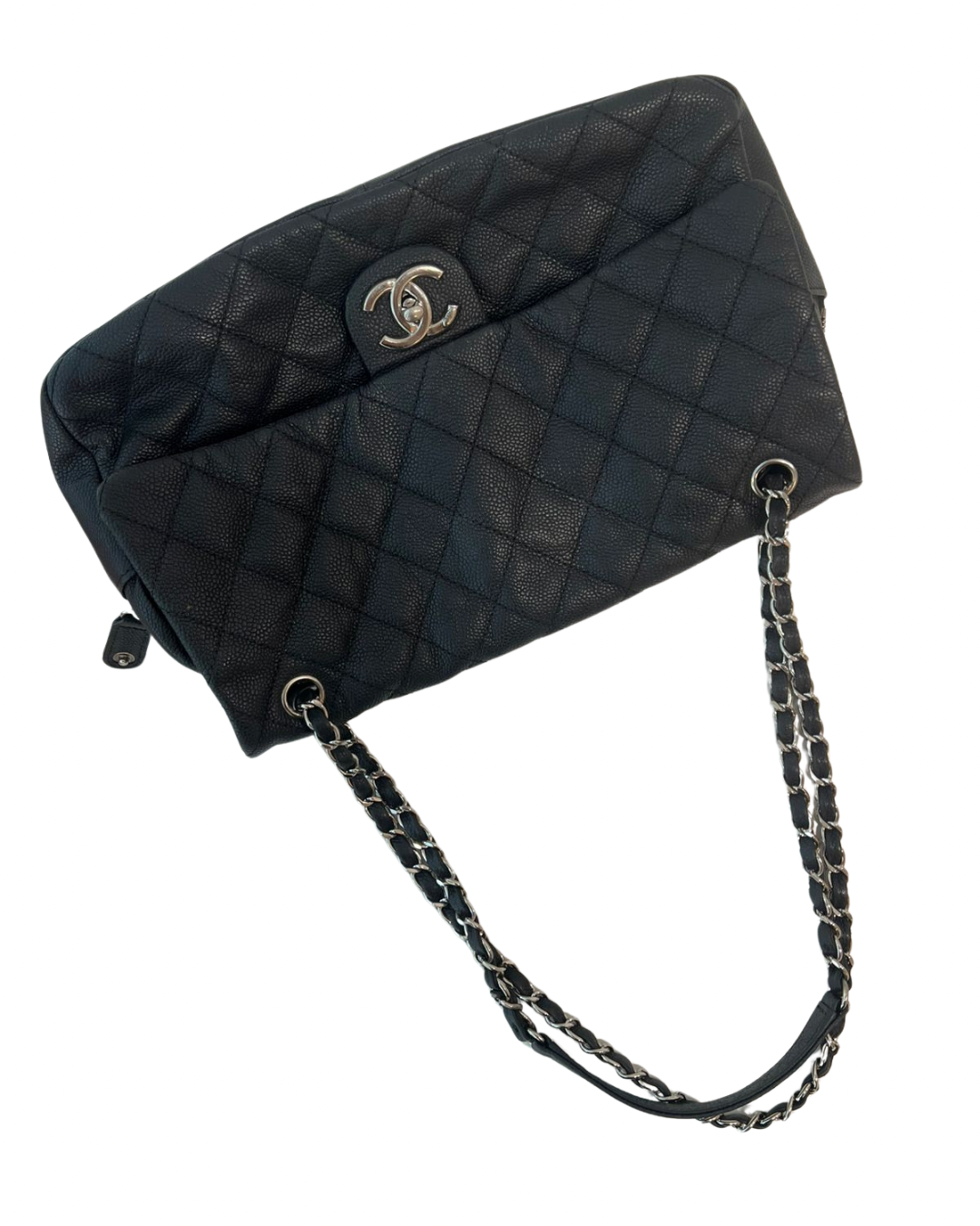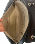 Corrente metálica entrelaçada com couro, permitindo uso duplo ou único