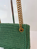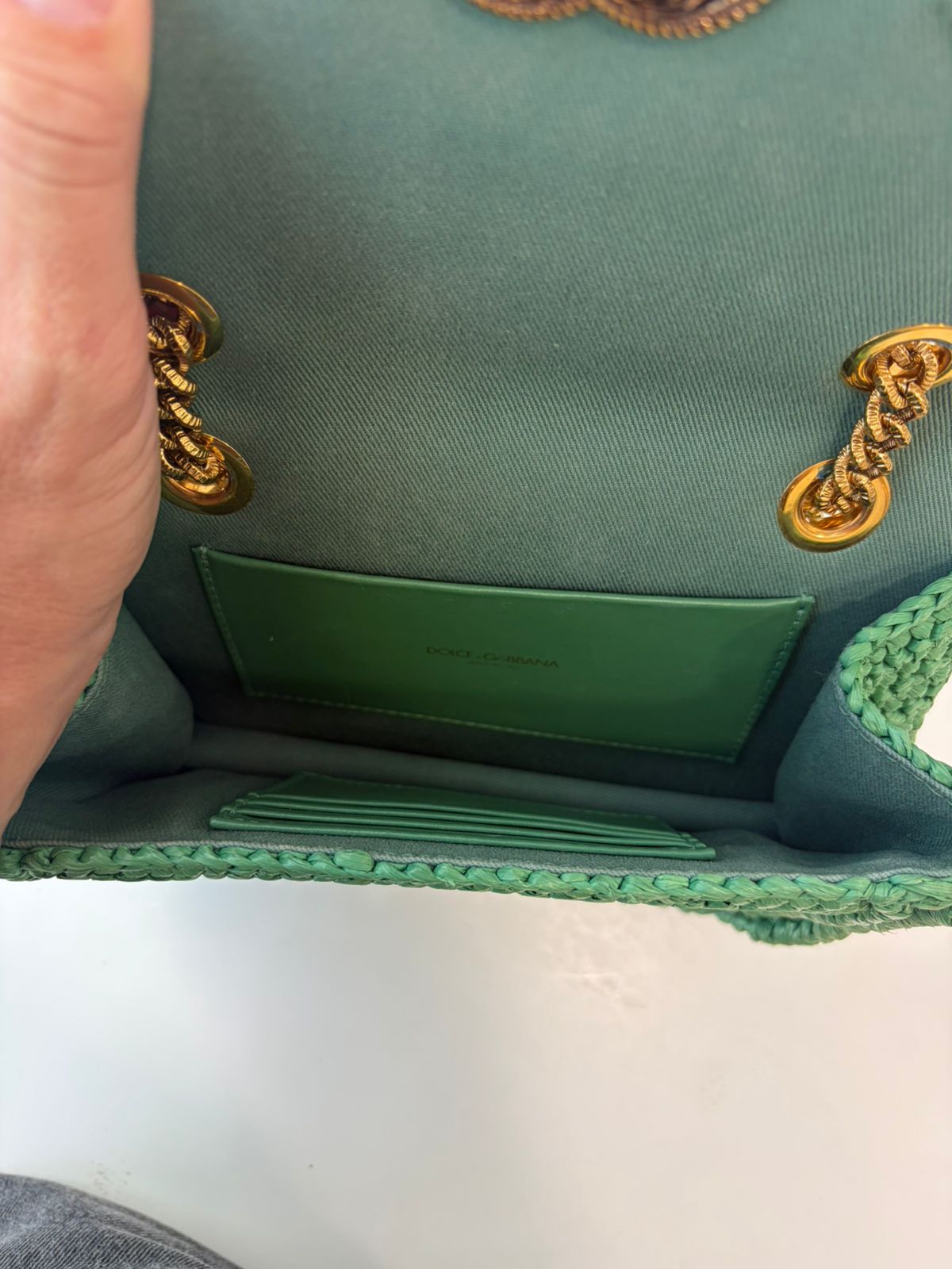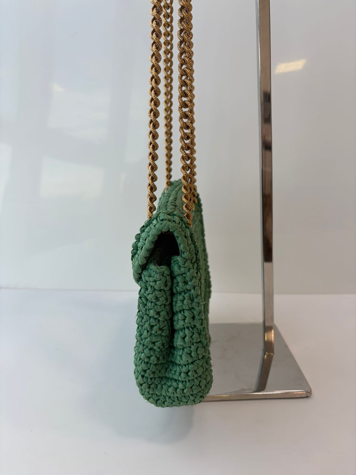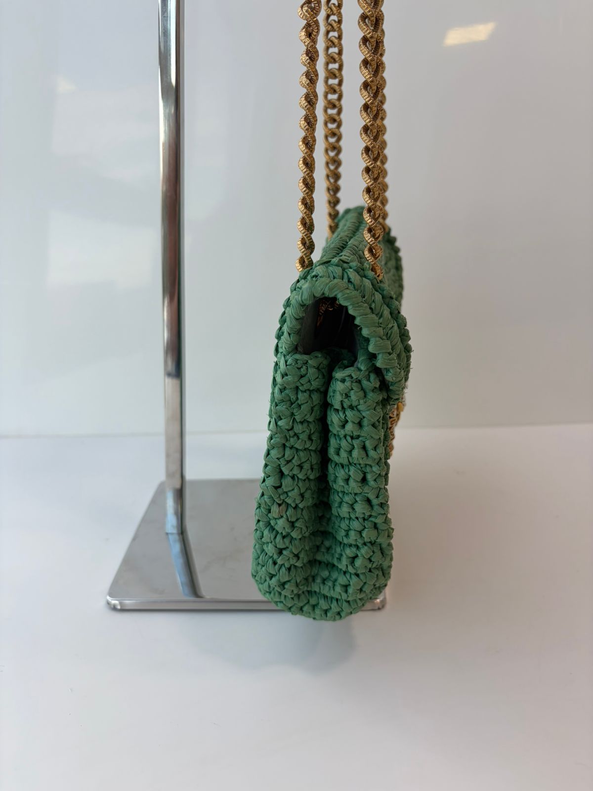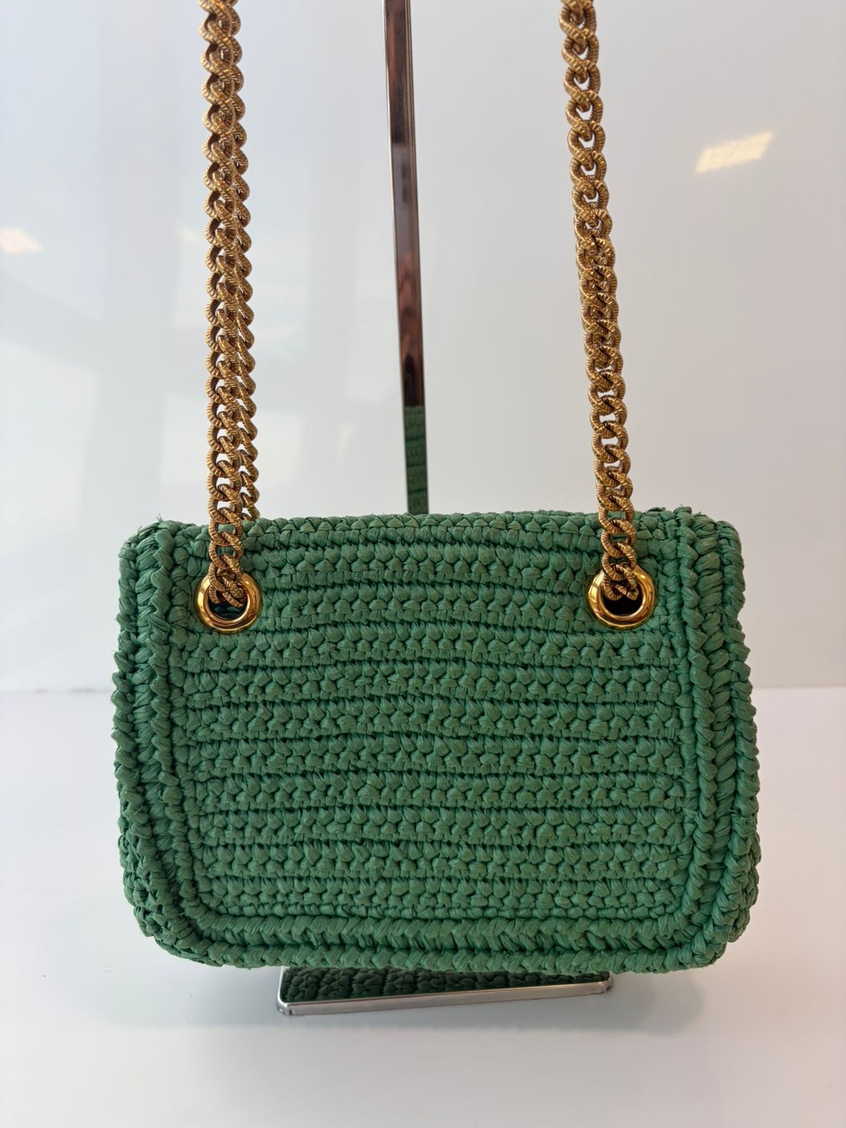 Crochê íntegro, sem fios soltos. Ferragens e aplicação frontal bem preservadas.