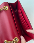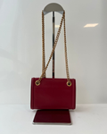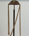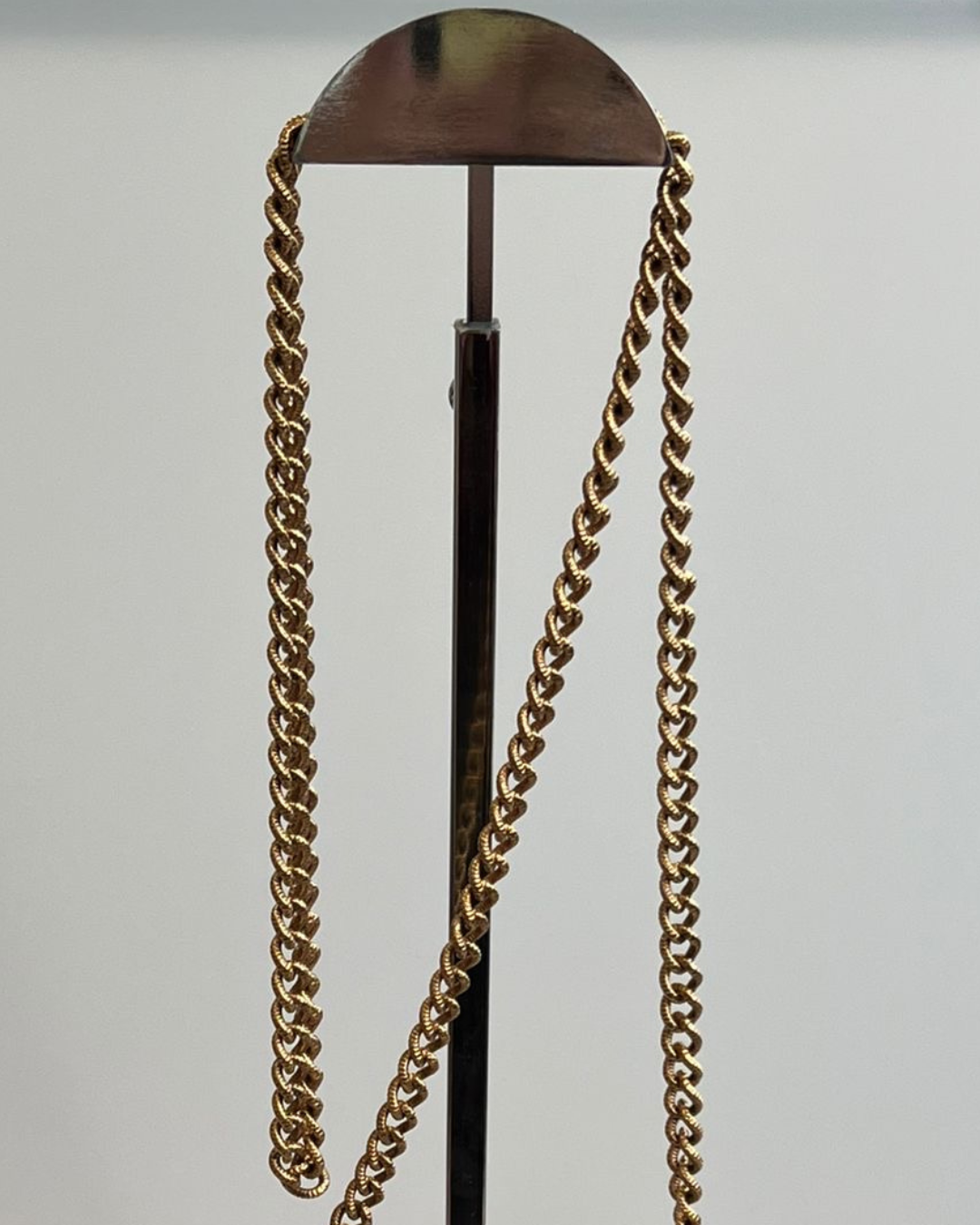Corrente metálica dourada, permitindo uso no ombro ou transversal