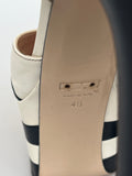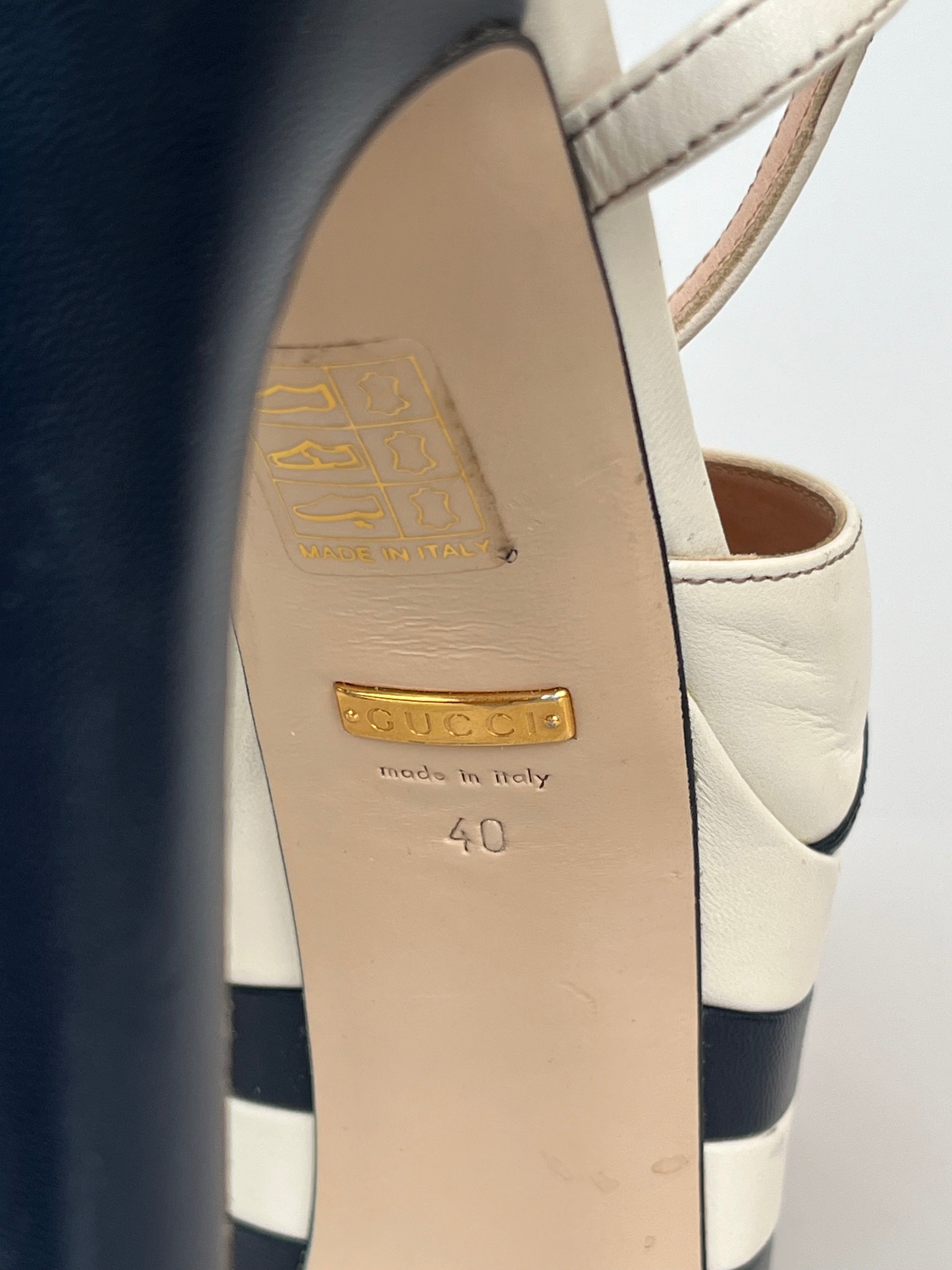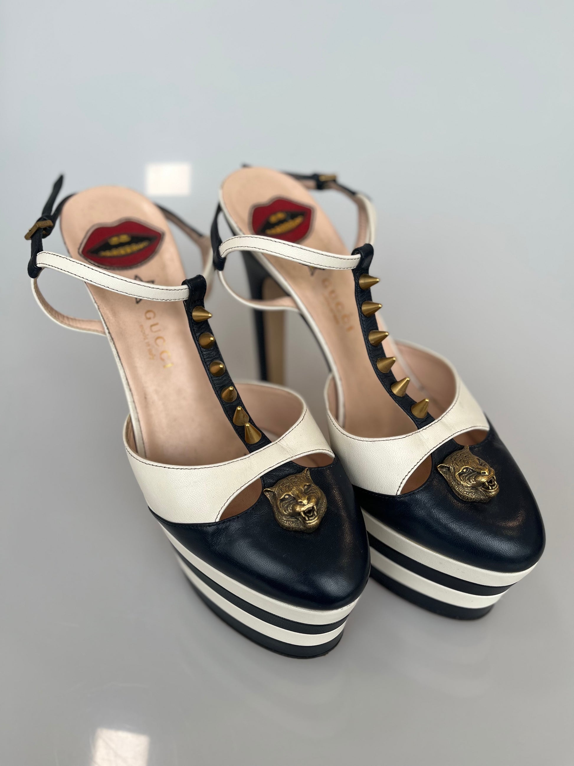Couro macio bicolor, plataforma revestida em couro listrado e aplicações metálicas