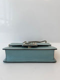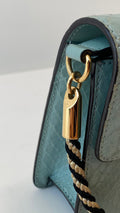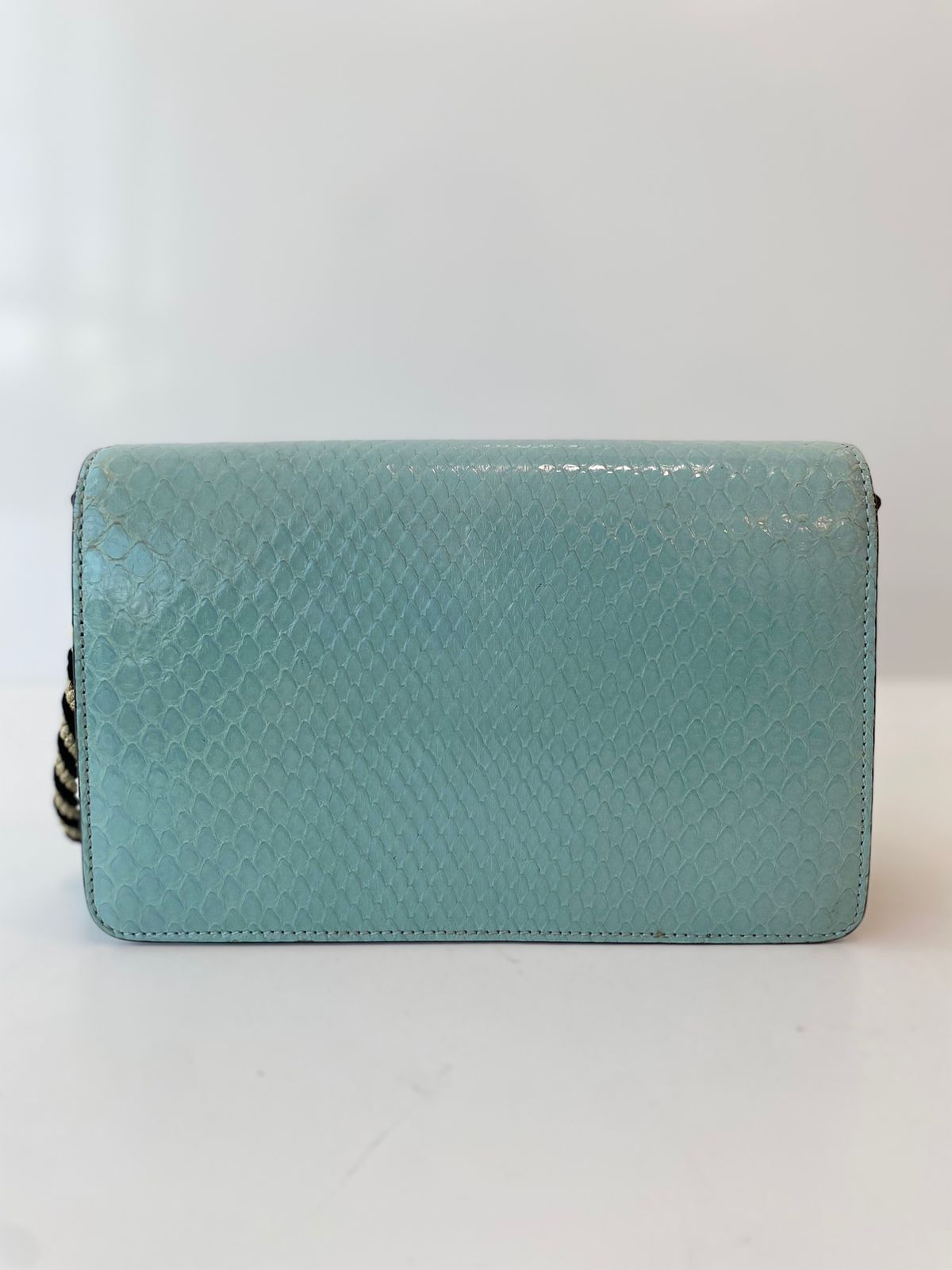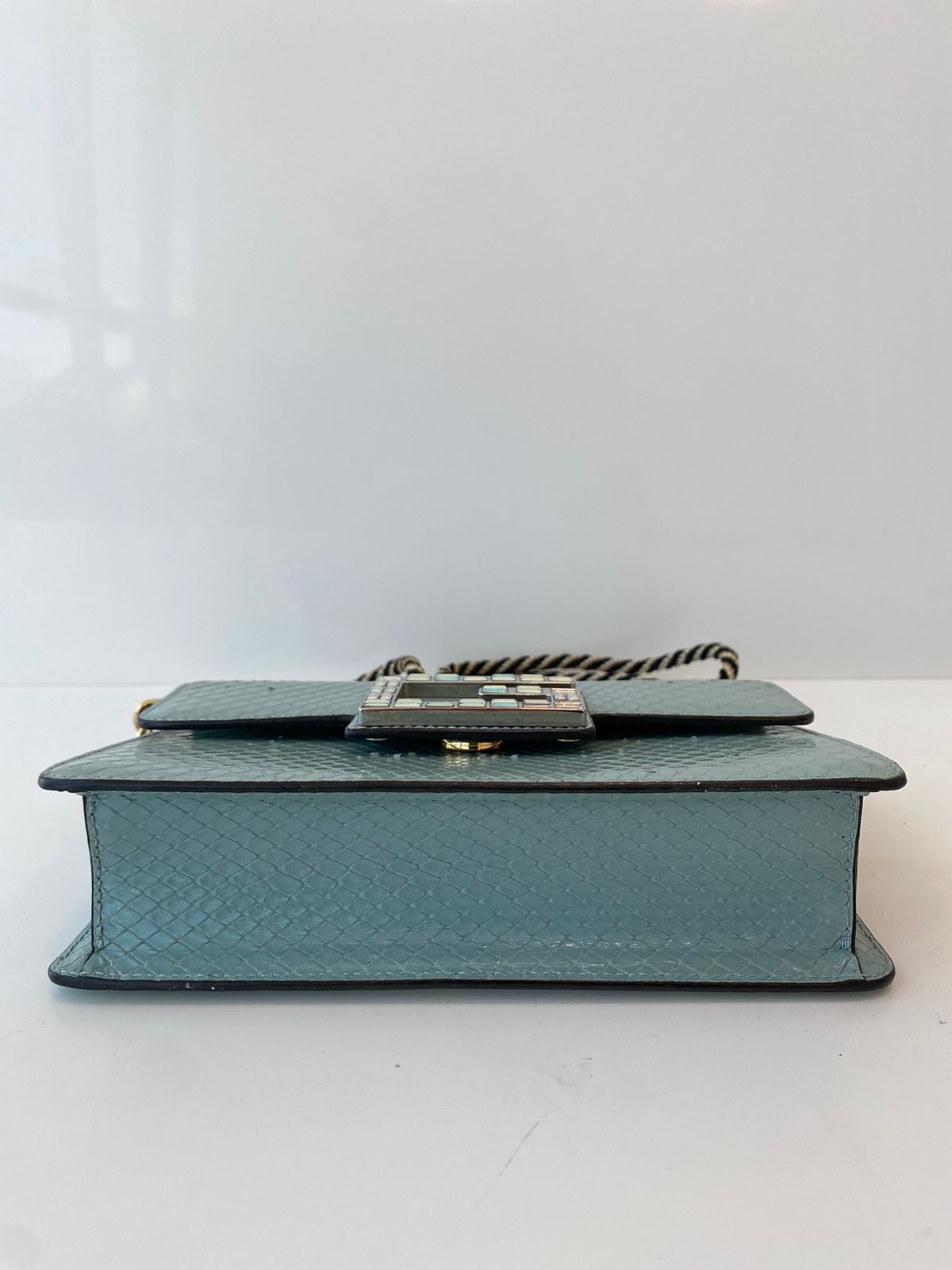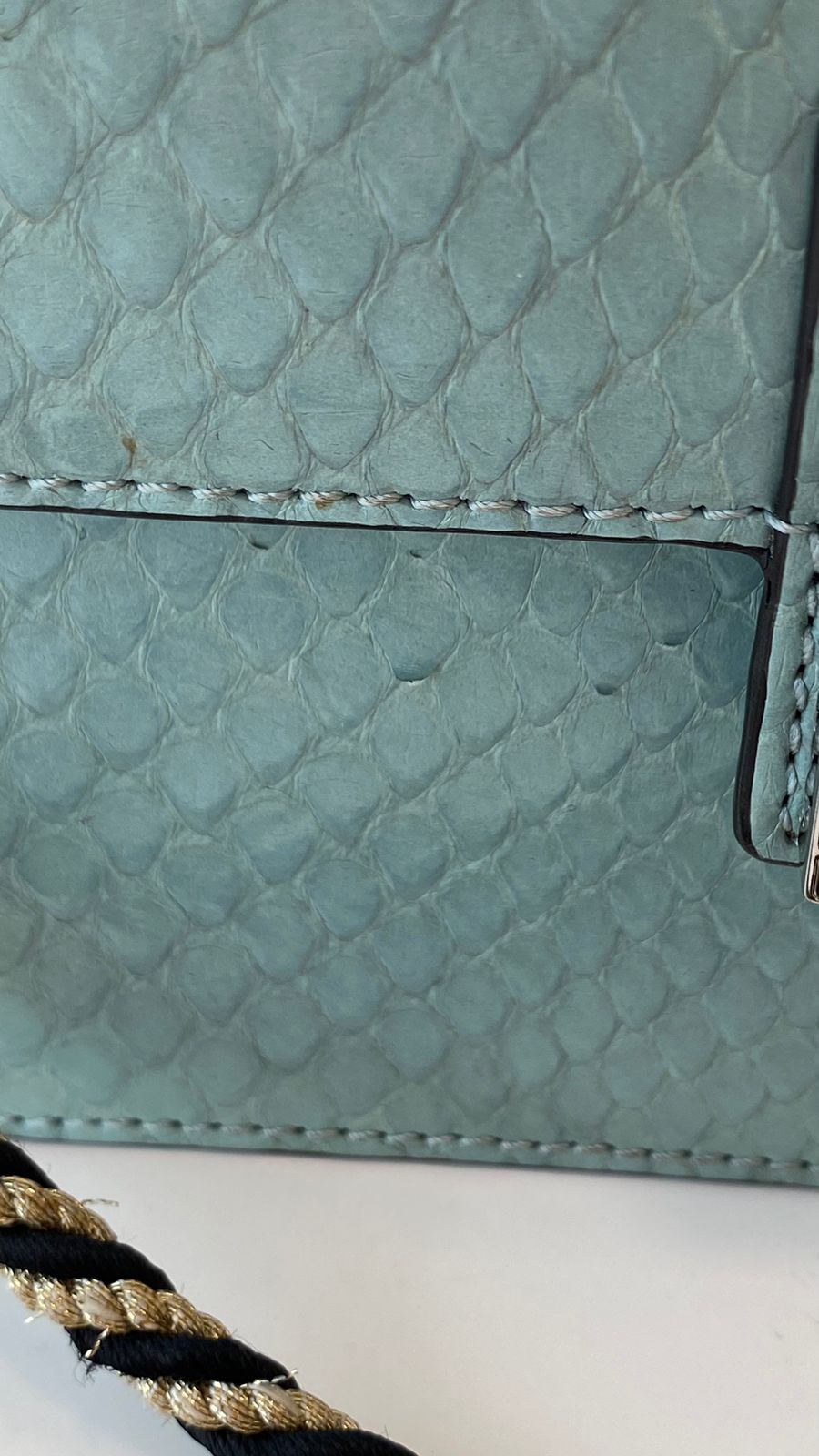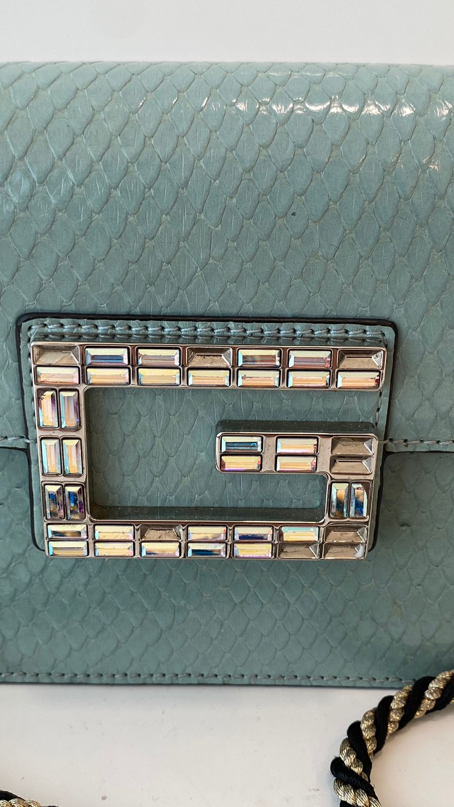 Couro de píton genuíno, com acabamento natural das escamas e aplicação do icônico logo G em metal cravejado com cristais