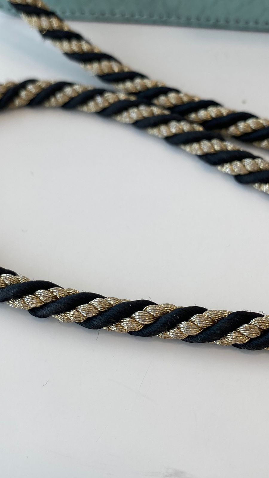 Alça longa em corda trançada bicolor (preto e dourado), estilo tiracolo, removível