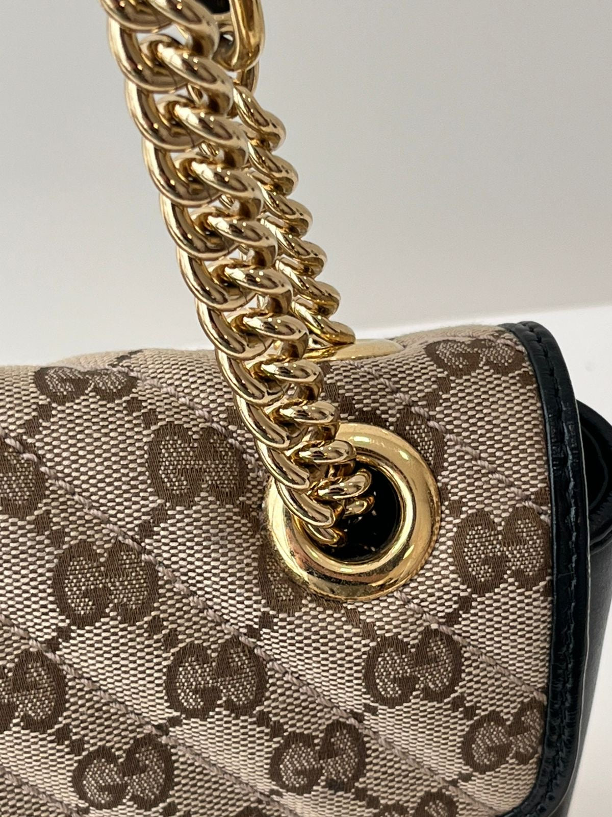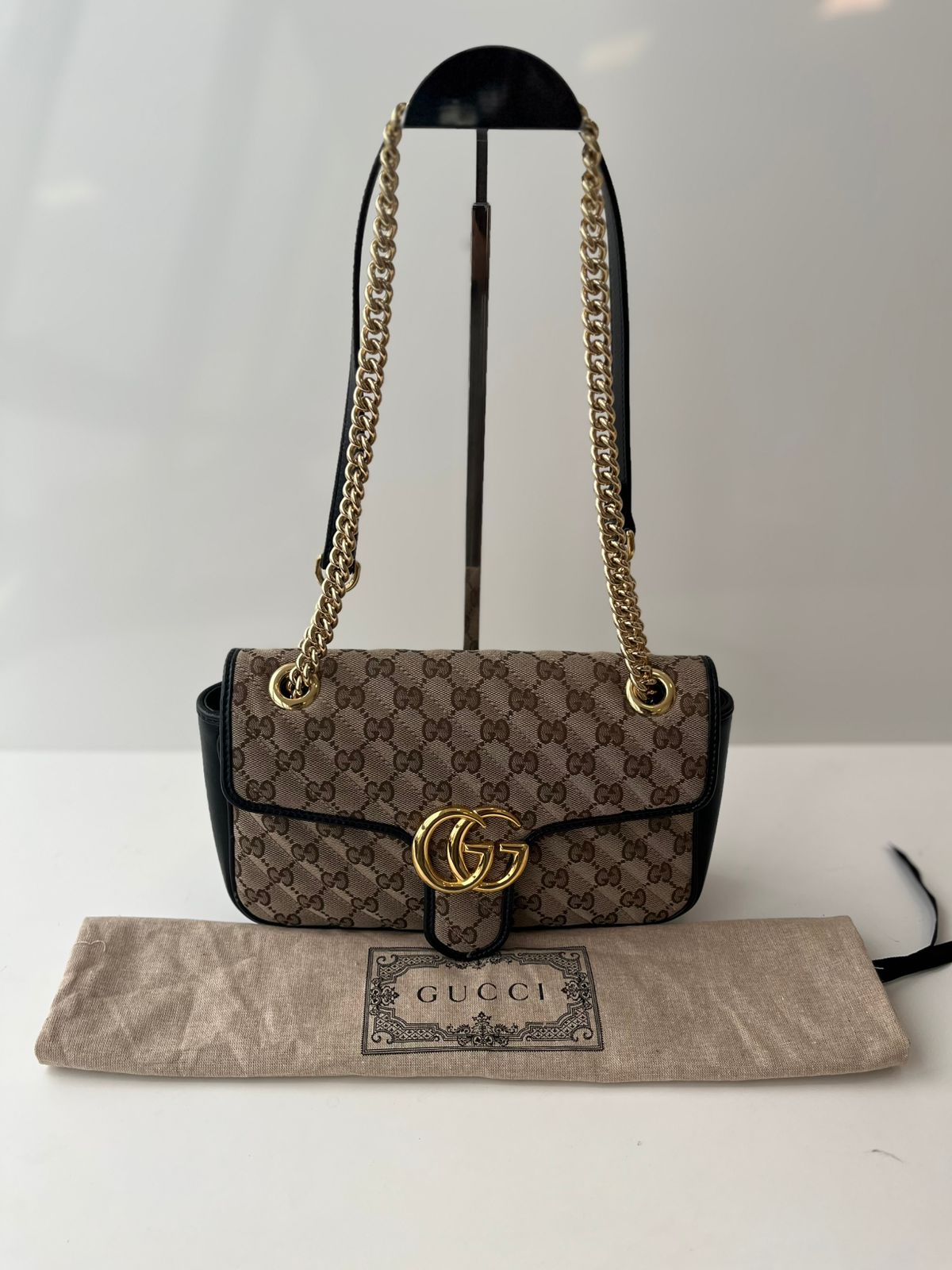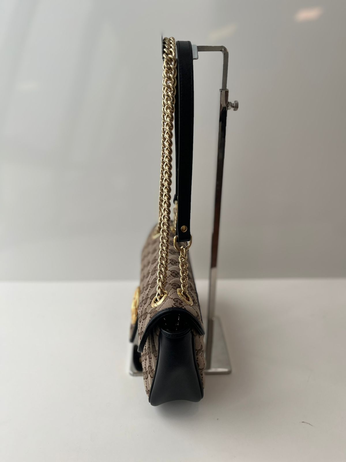 Monograma GG Supreme com detalhes em couro preto e ferragens douradas.