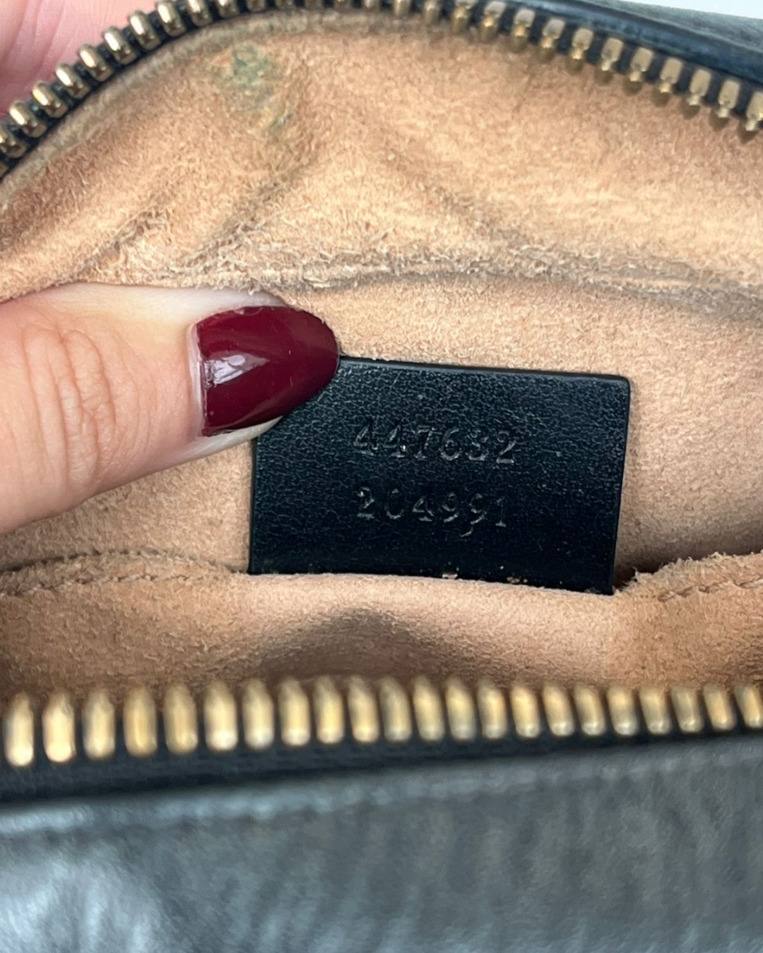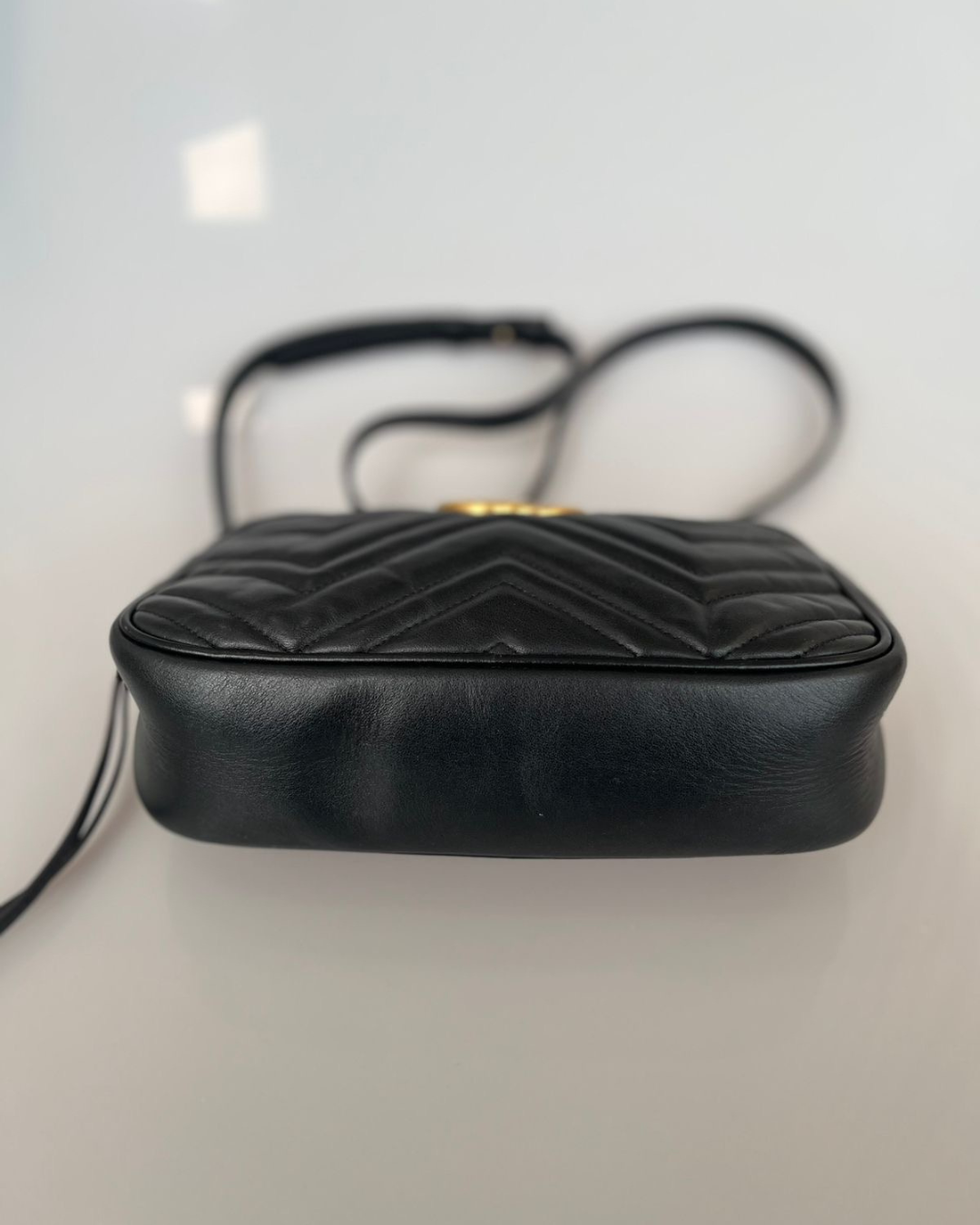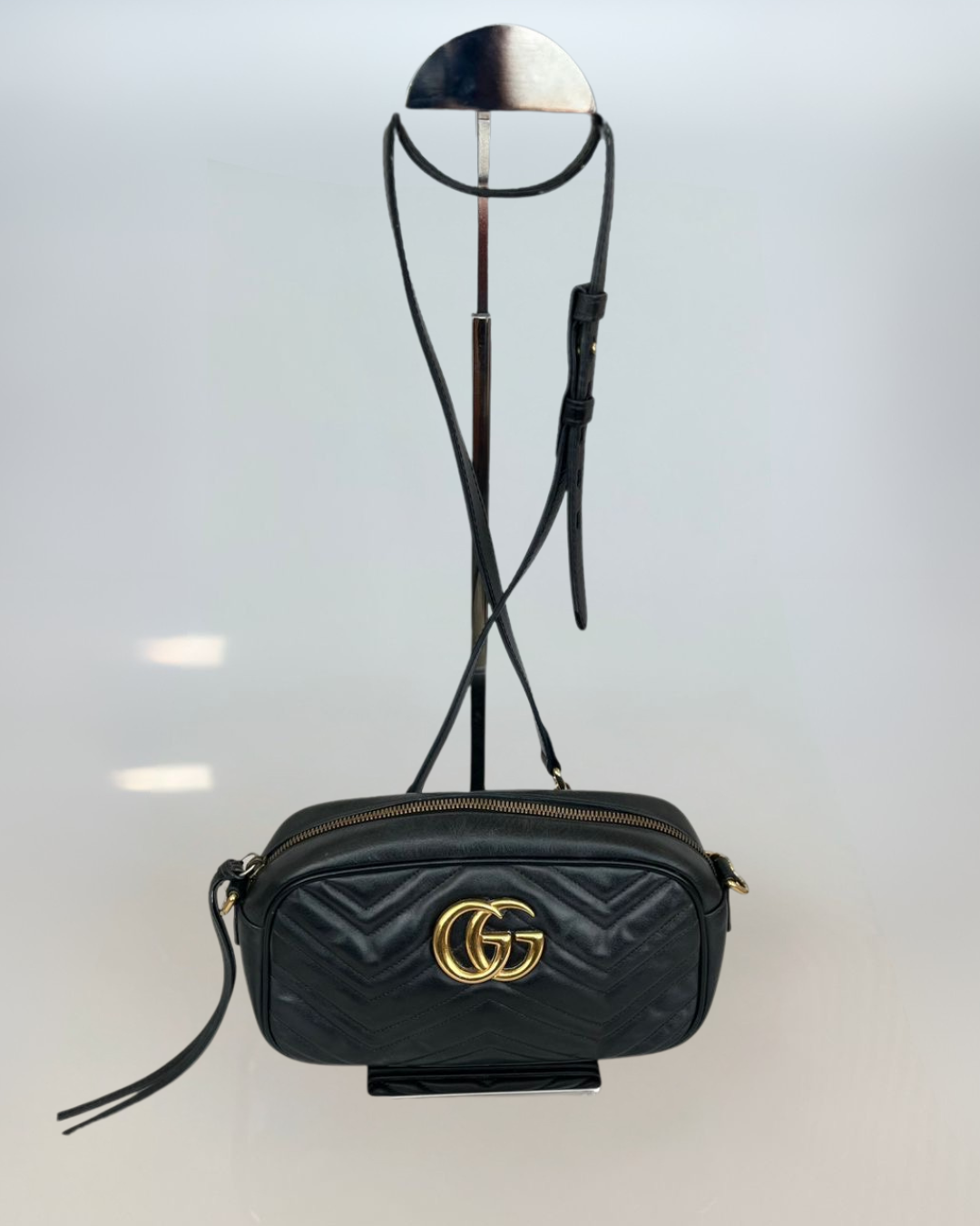 Fechamento com zíper e o icônico fecho GG dourado.