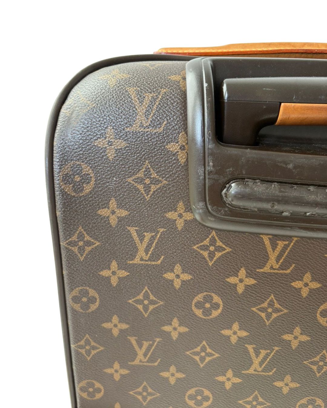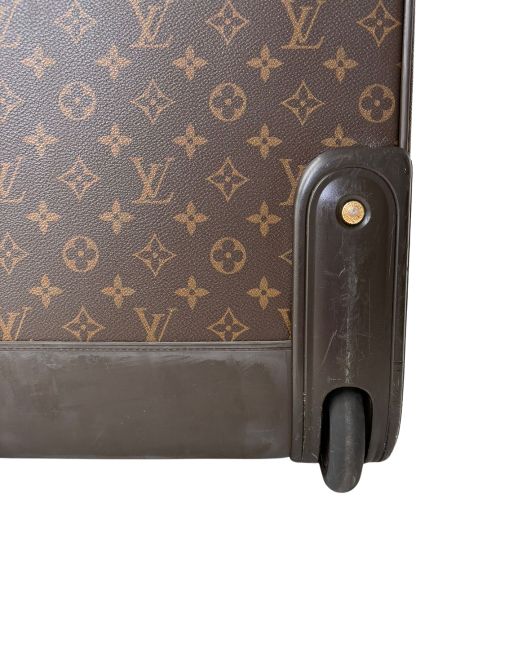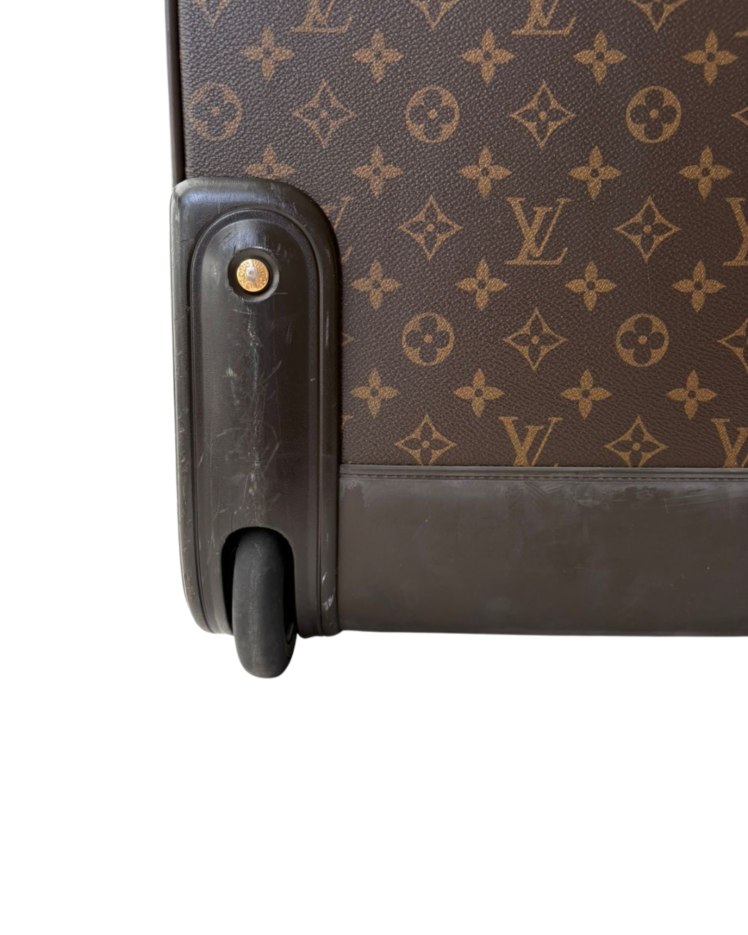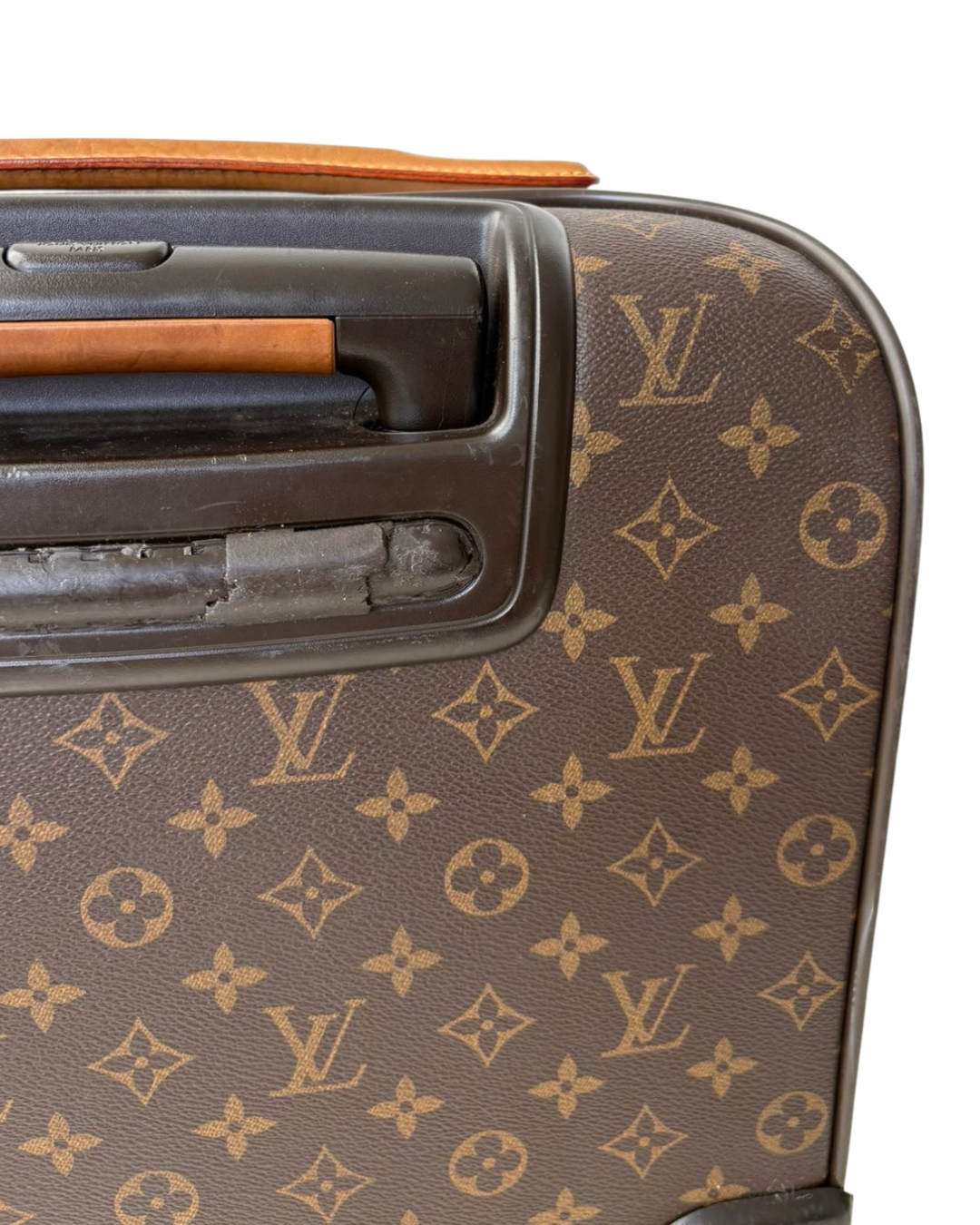 Em bom estado de conservação, com sinais de uso visíveis, especialmente nas extremidades do couro, que apresentam escurecimento natural devido ao uso. As rodas e ferragens estão em bom estado.