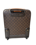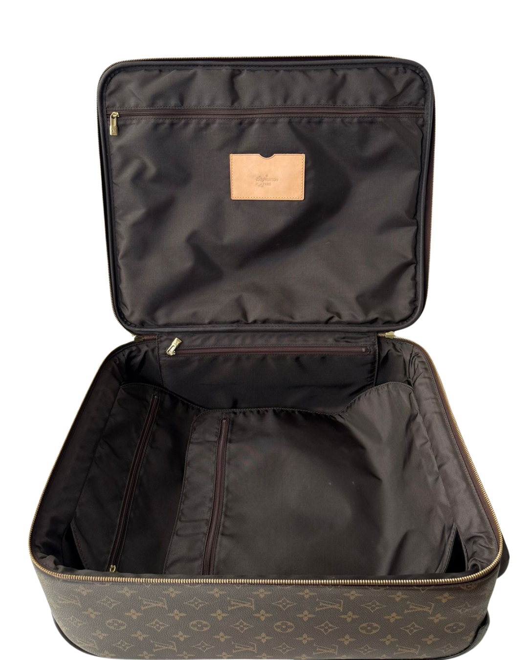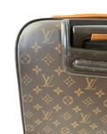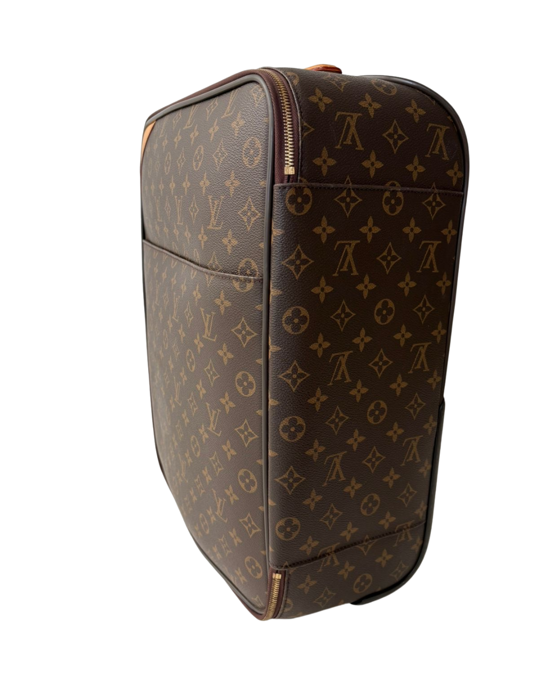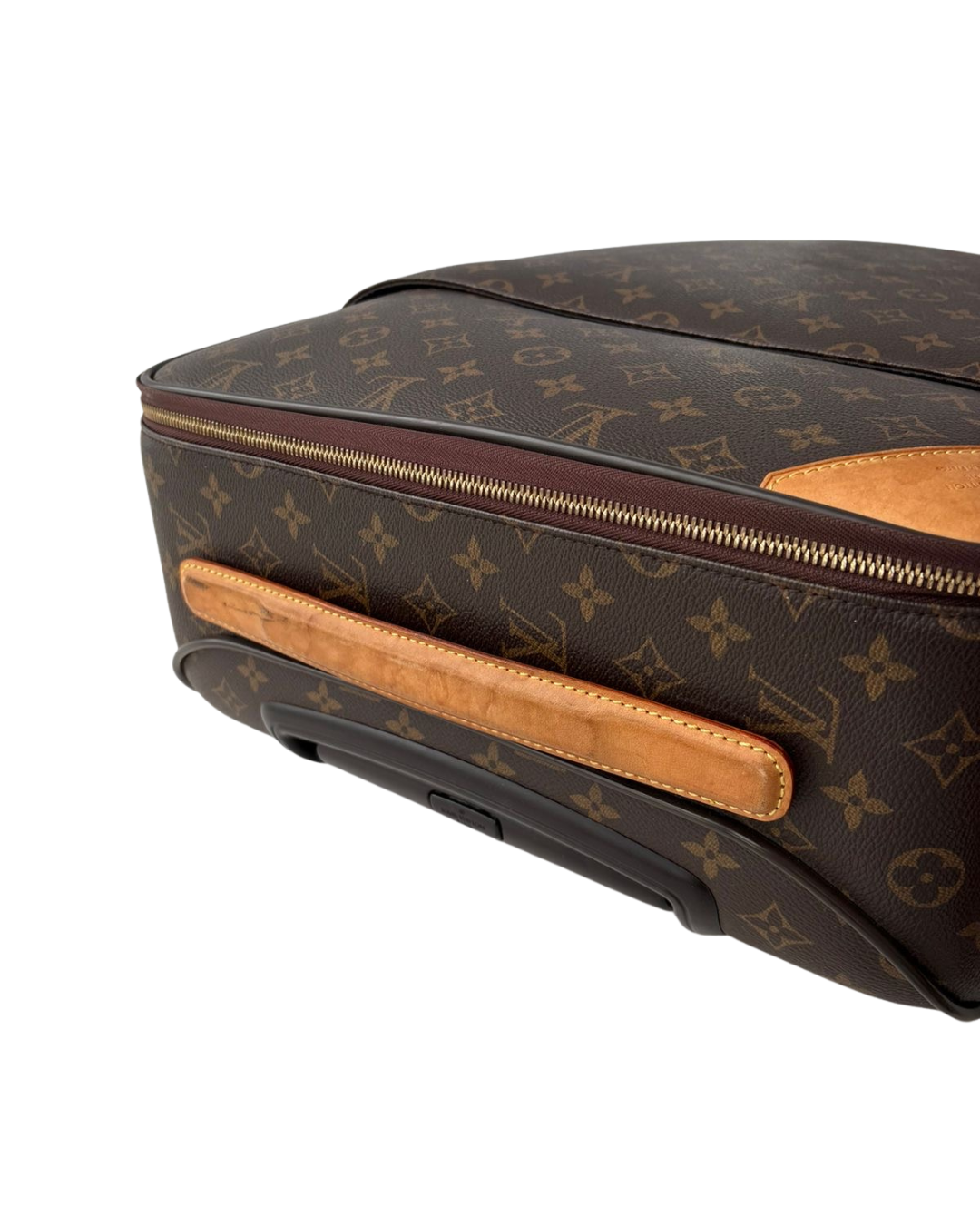 Em bom estado de conservação, com sinais de uso visíveis, especialmente nas extremidades do couro, que apresentam escurecimento natural devido ao uso. As rodas e ferragens estão em bom estado.