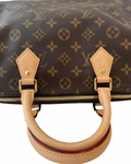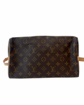 Muito bom estado, com sinais de uso leves nas alças de couro, que podem apresentar uma leve patina característica do uso. A lona monogram está em excelente condição sem manchas ou desgastes. As ferragens douradas estão em ótimo estado, com brilho.