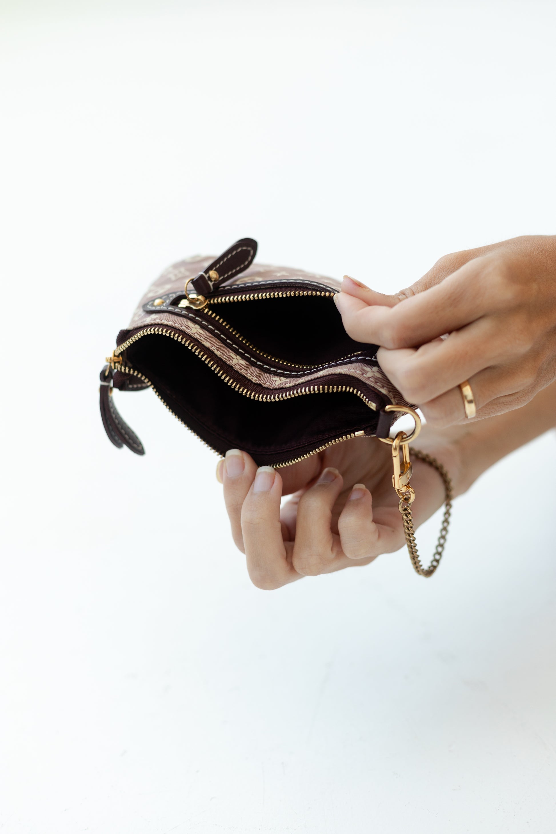 Descrição: compartimento interno único; fechamento por zíper; bolso frontal fechado por zíper; ferragens douradas em ótimo estado; não comporta celulares.