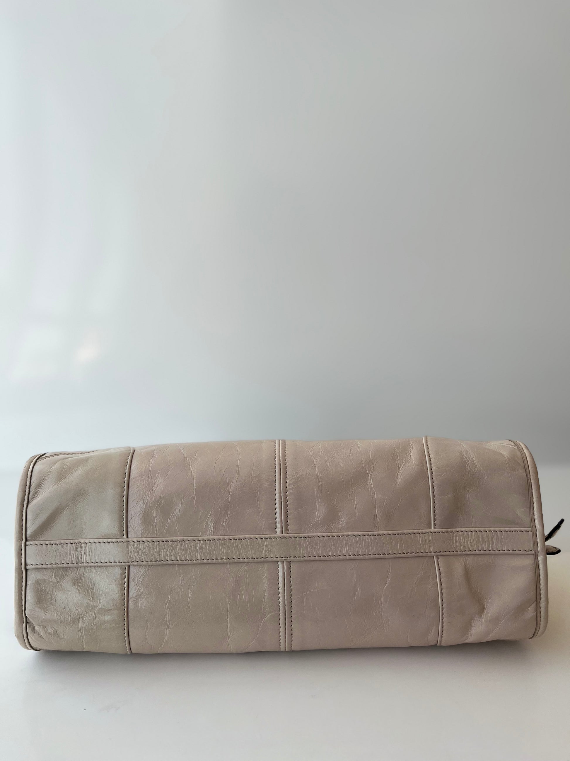 Muito bom estado — couro bem preservado, sem marcas ou desgastes significativos. Ferragens sem oxidação aparente e forro interno limpo.
