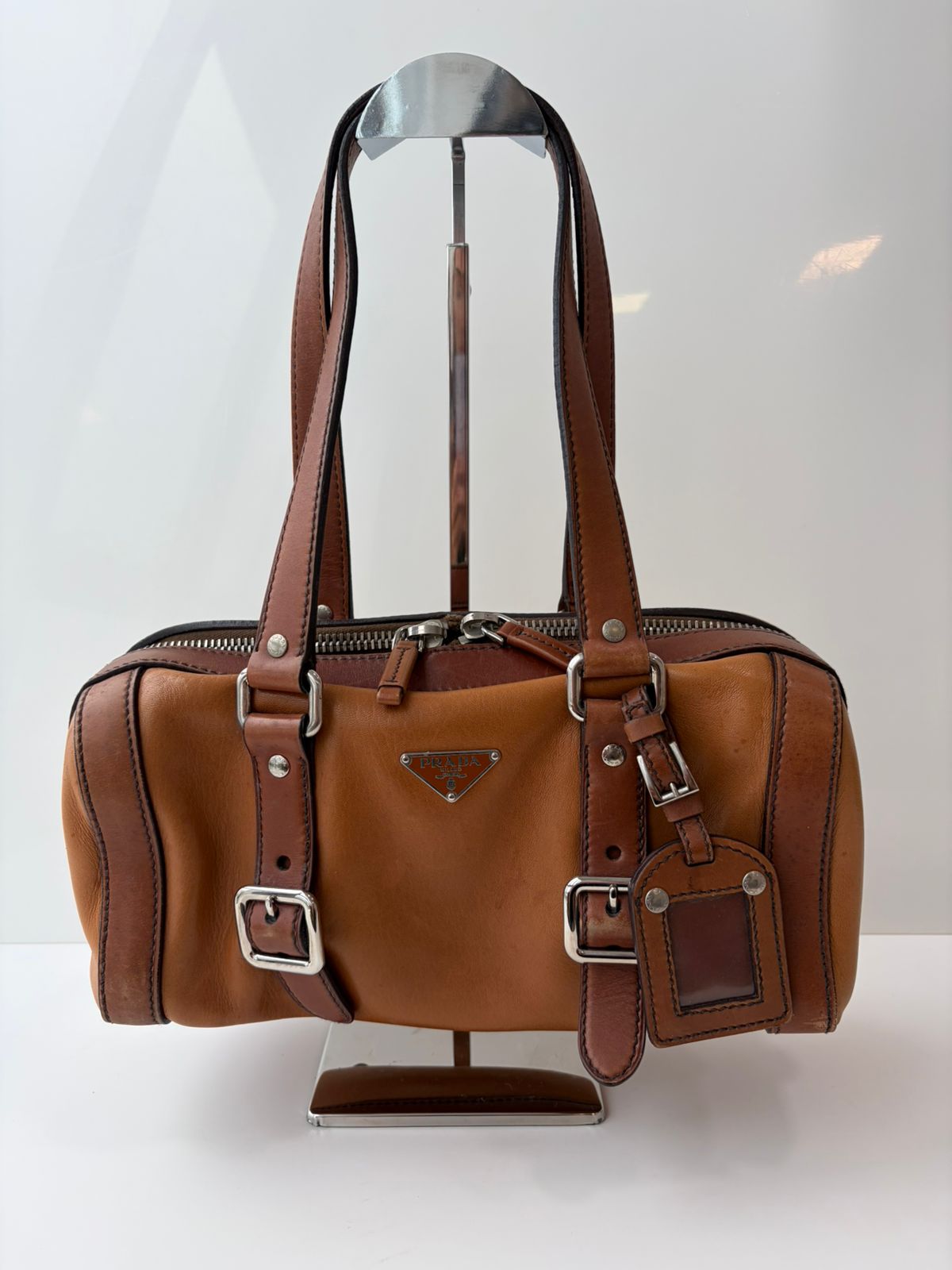 Bom estado, com marcas visíveis de uso no couro, especialmente nas bordas e alças.
