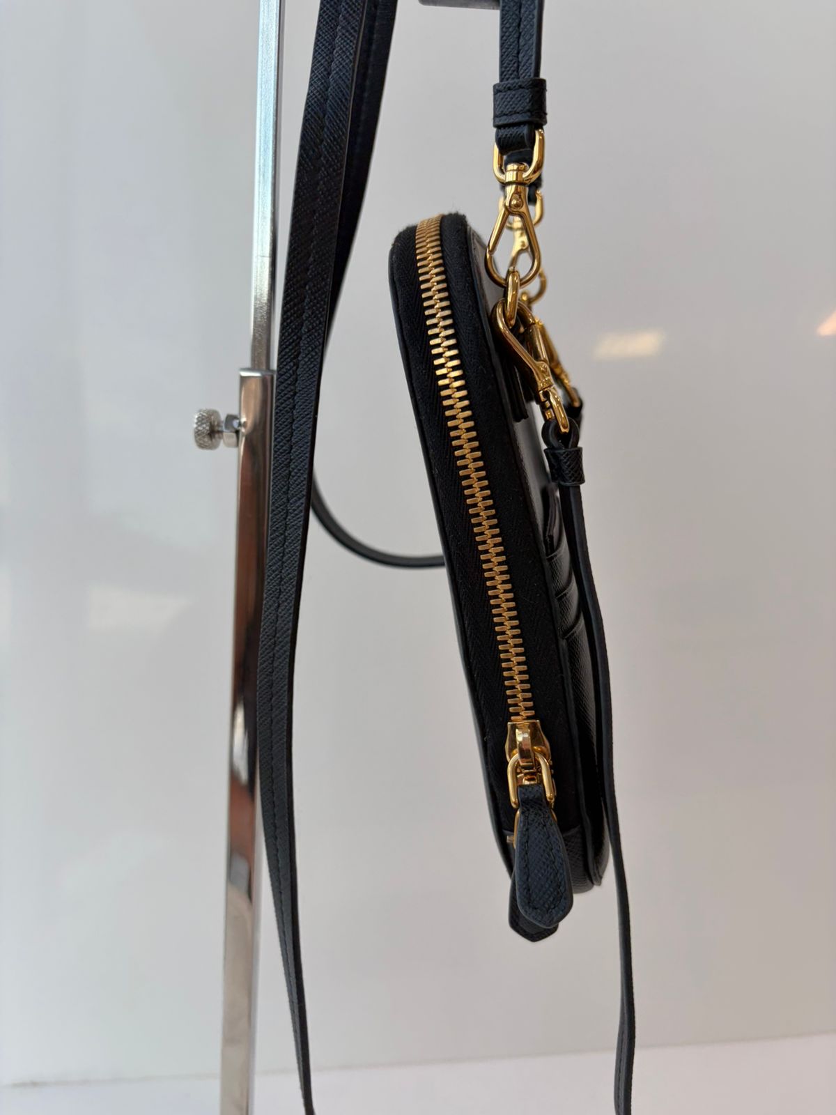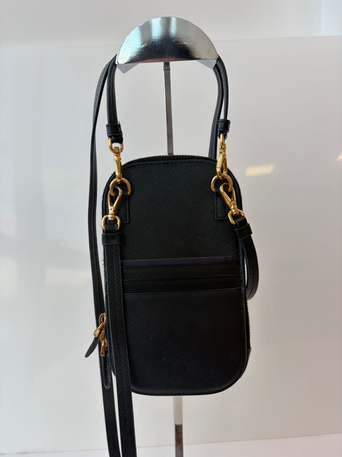 Couro Saffiano preservado, estrutura firme. Ferragens com brilho, sem oxidação relevante.