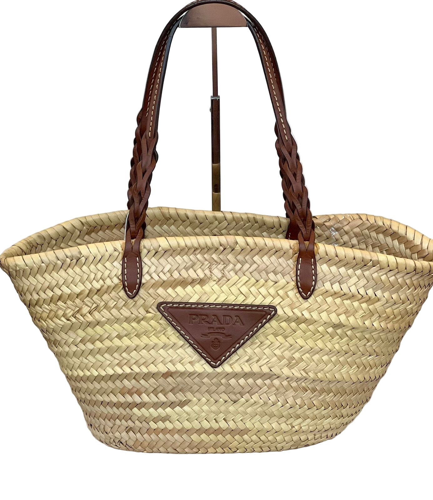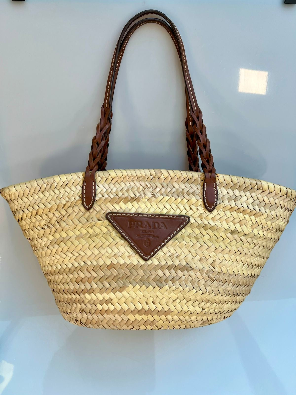 Prada Woven Palm and Leather Tote
