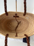 Muito bom estado. A palha está bem preservada, sem quebras aparentes. As alças em couro estão firmes e sem desgaste relevante. Pode apresentar leves variações naturais da fibra, típicas do material.