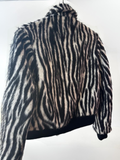 Bomber. Gola estruturada. Dois bolsos frontais. Punhos e barra canelados