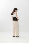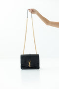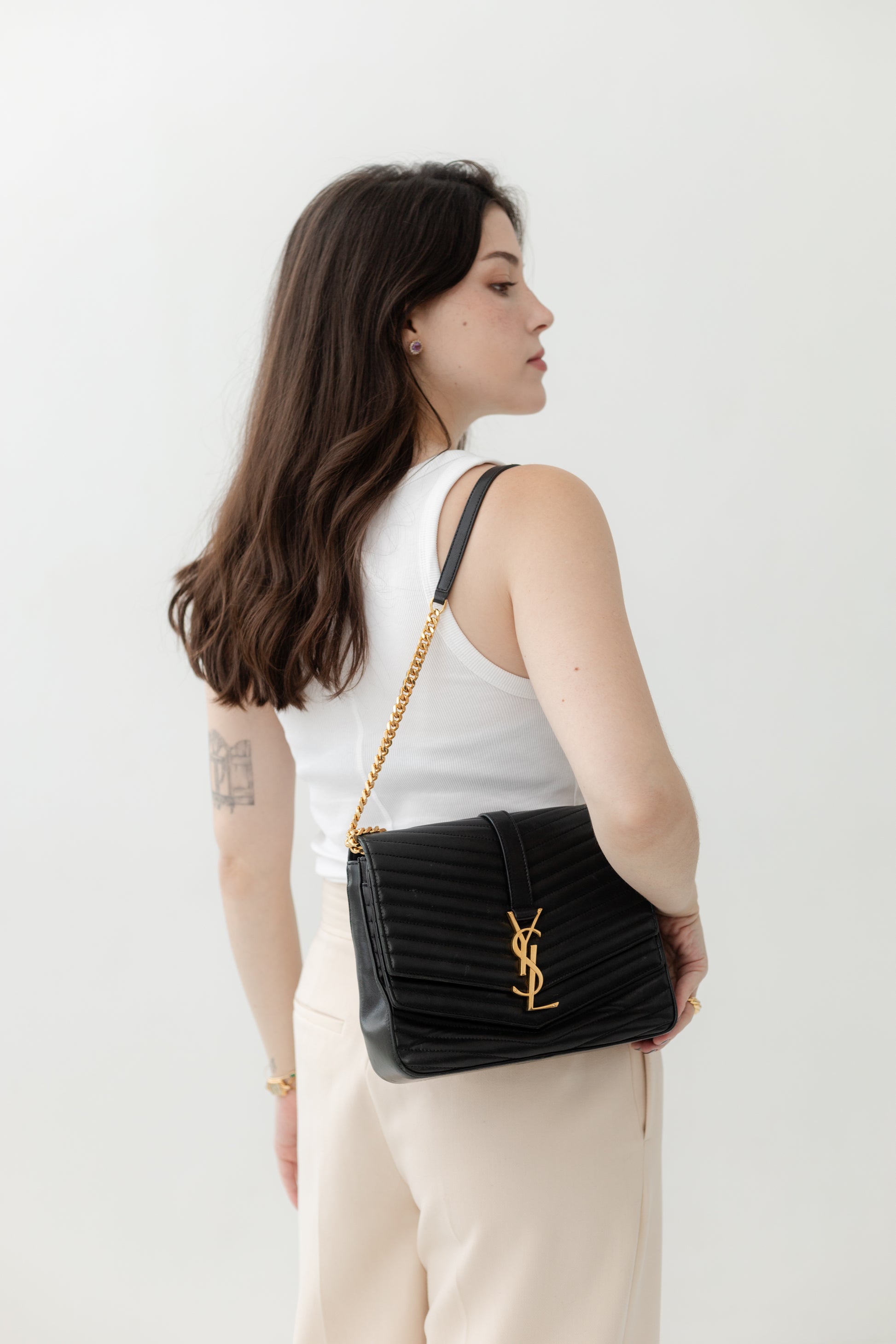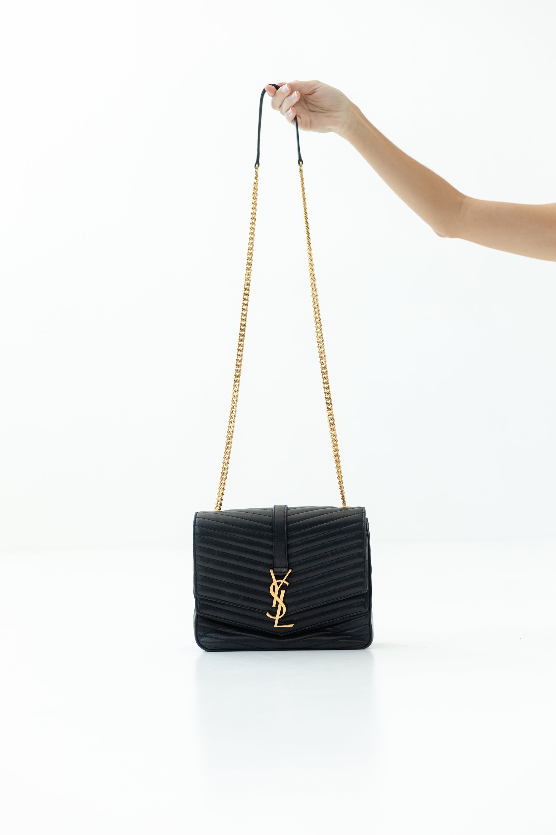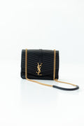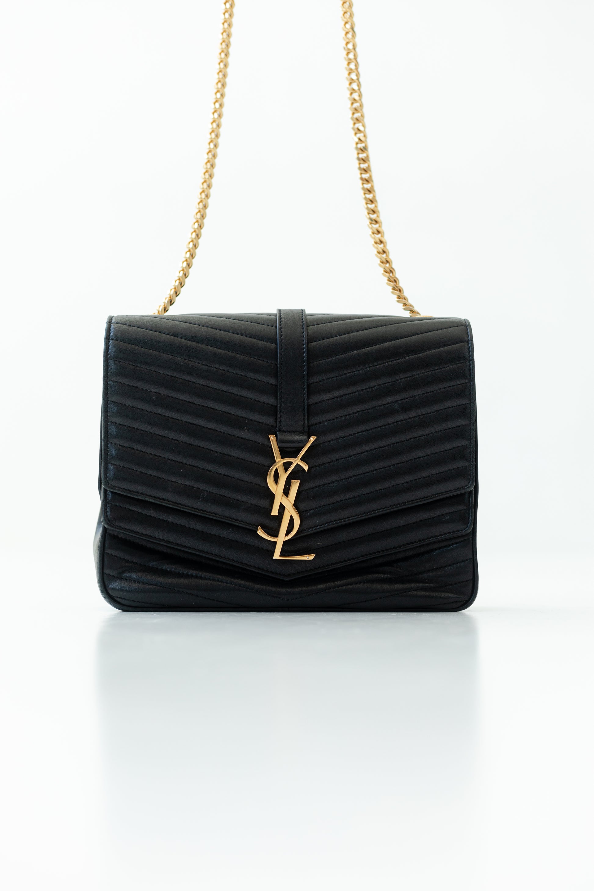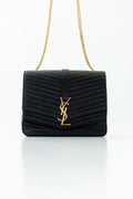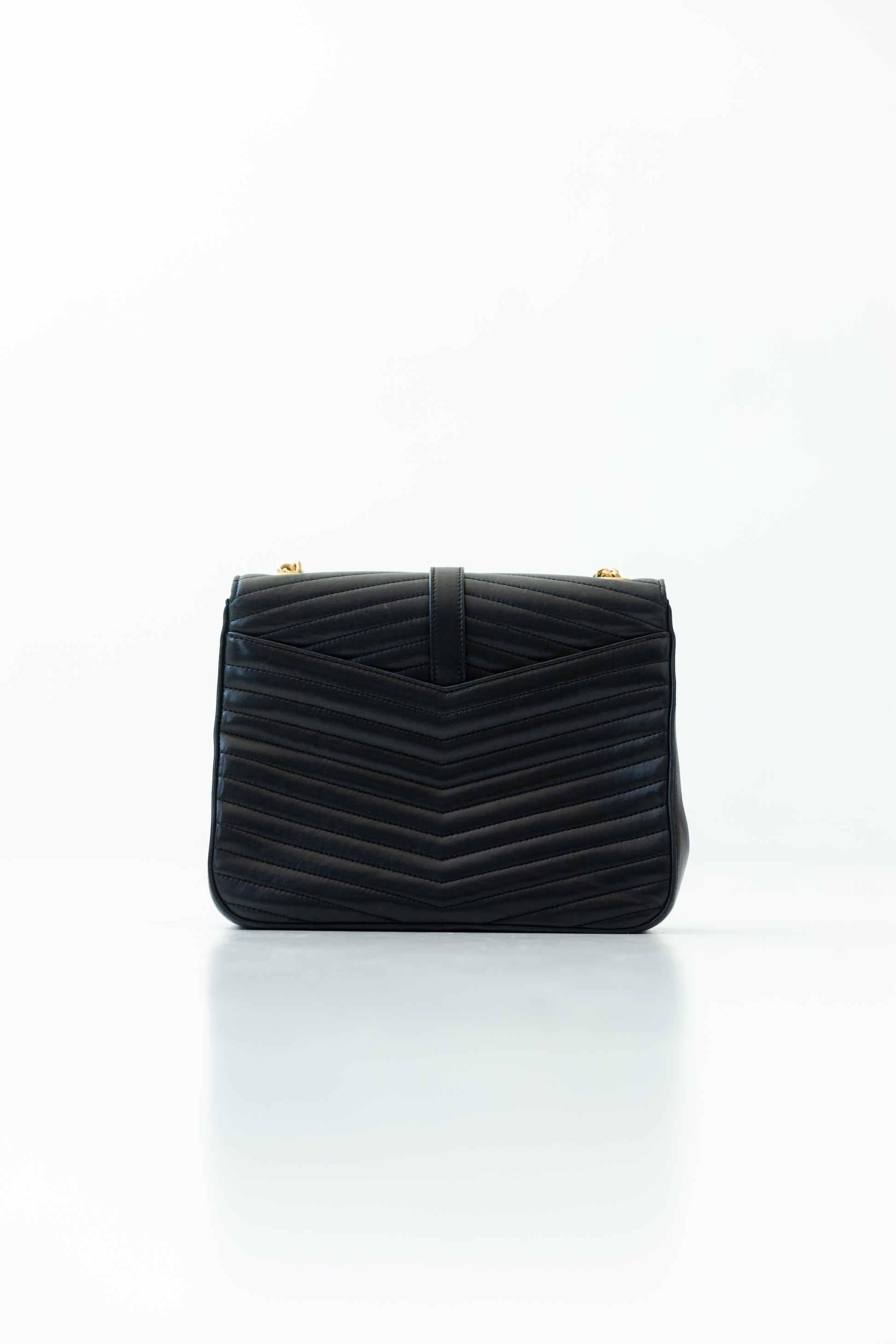 Couro calfskin preto com acabamento matelassê chevron Y e tira de couro na aba característica das Sulpice
