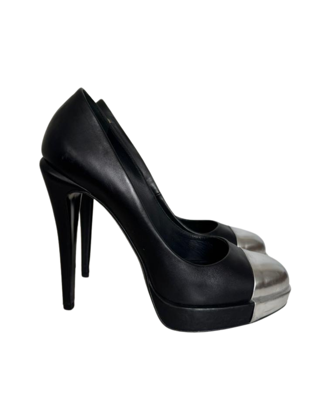 Bom estado, com sinais mínimos de uso. O couro apresenta brilho sutil e o bico metálico está em ótimo estado, sem arranhões ou danos.