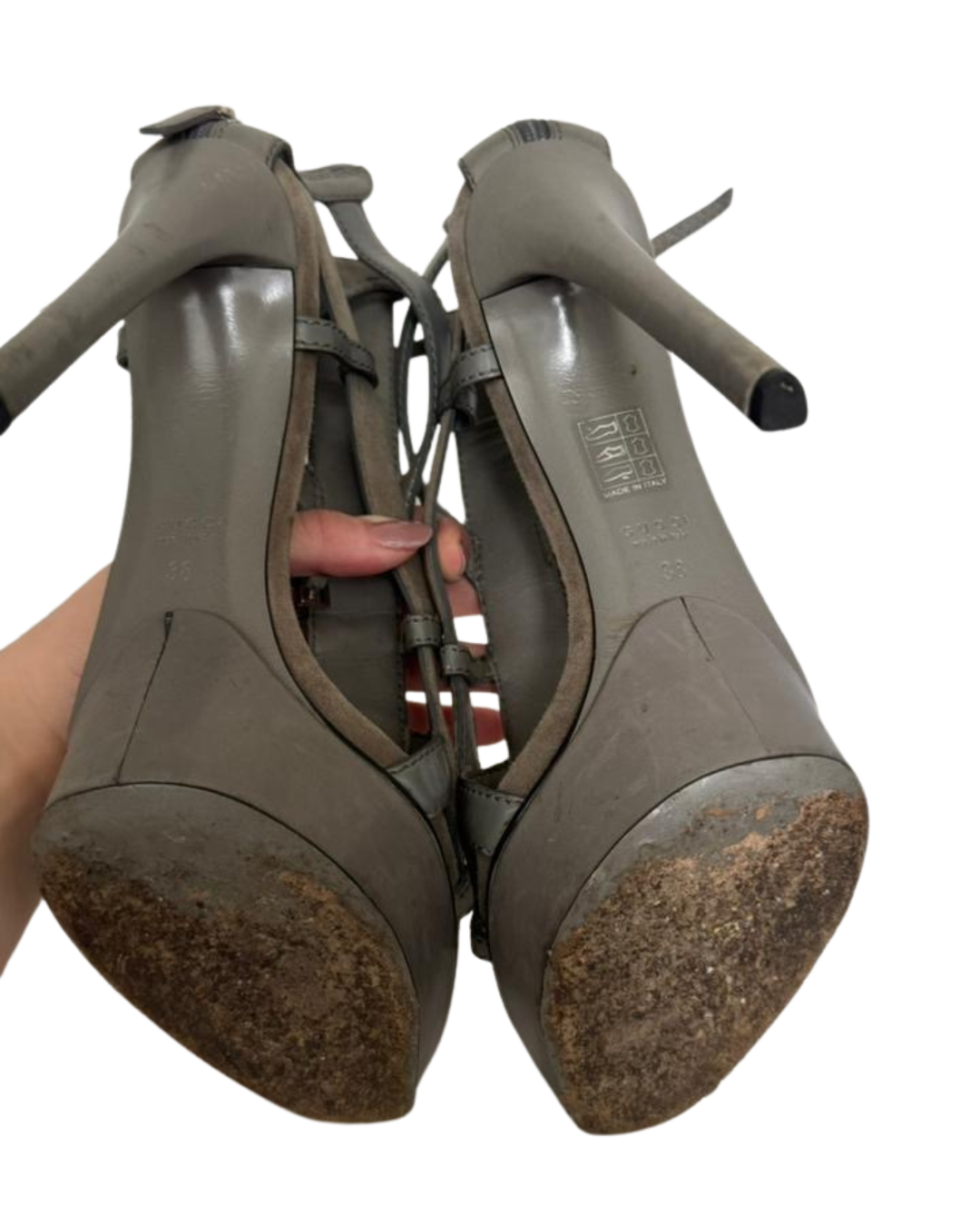Estado justo (fair) com sinais de uso visíveis, incluindo desgaste nas solas e possíveis marcas leves na parte superior. A sandália ainda mantém a estrutura e o design intactos, adequada para quem busca um item com um estilo autêntico, mas que já apresenta algumas marcas do tempo.