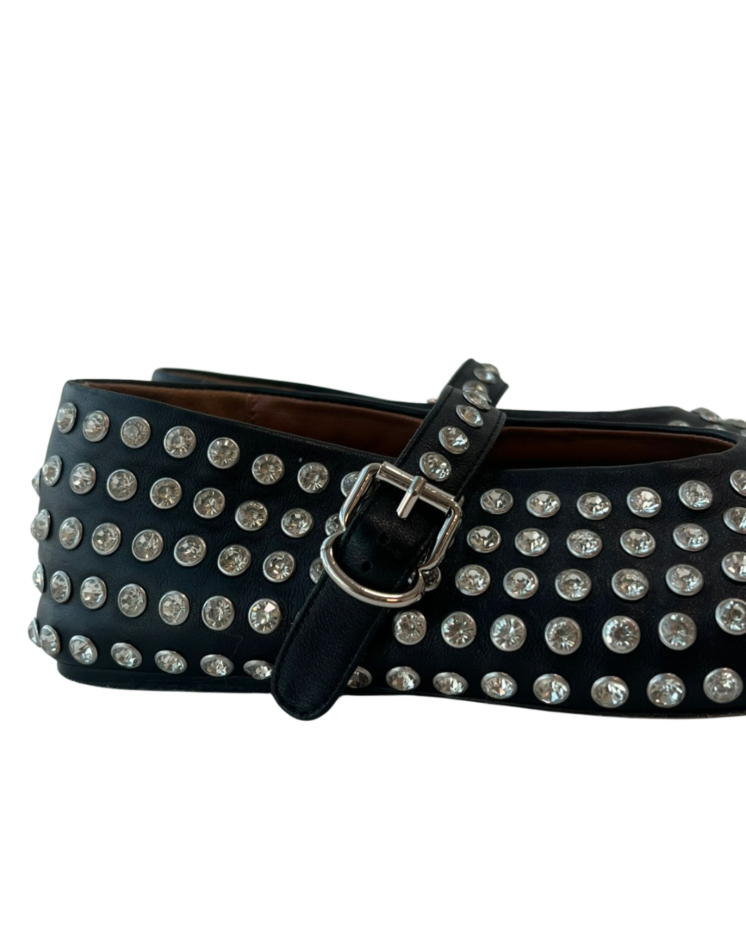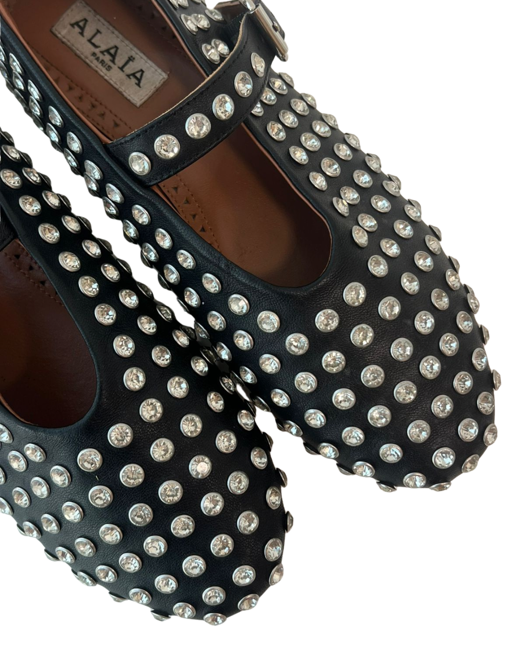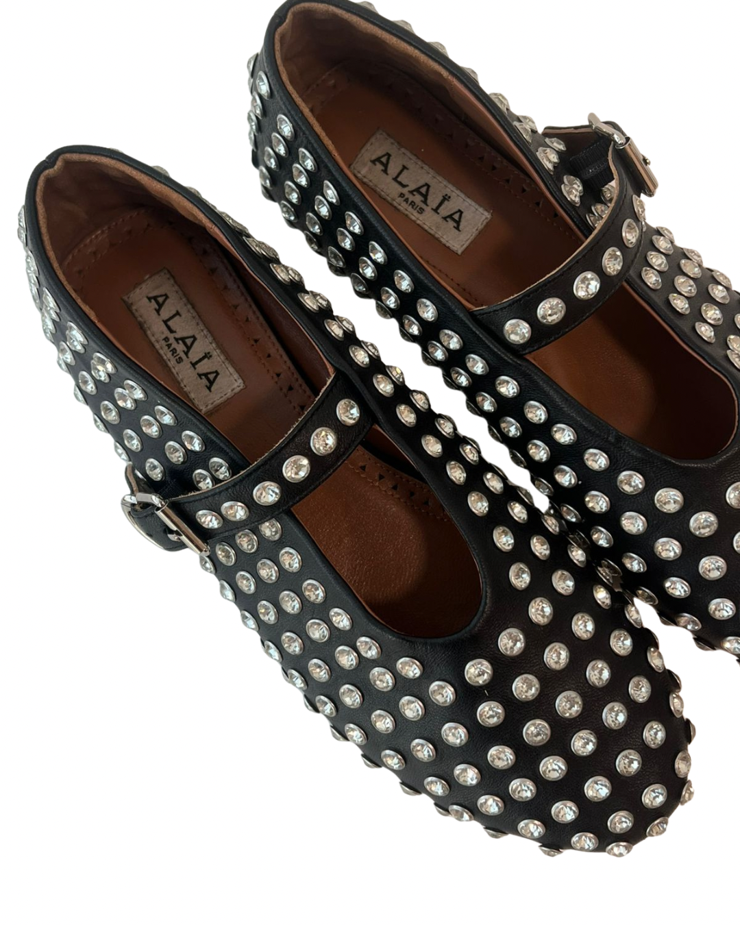 Sola desgastada, mas o couro e os cristais estão bem preservados.